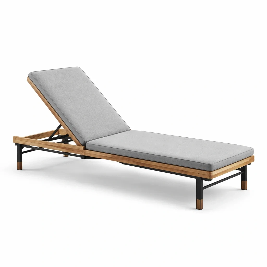 Sdraio in legno teak e metallo con cuscino grigio