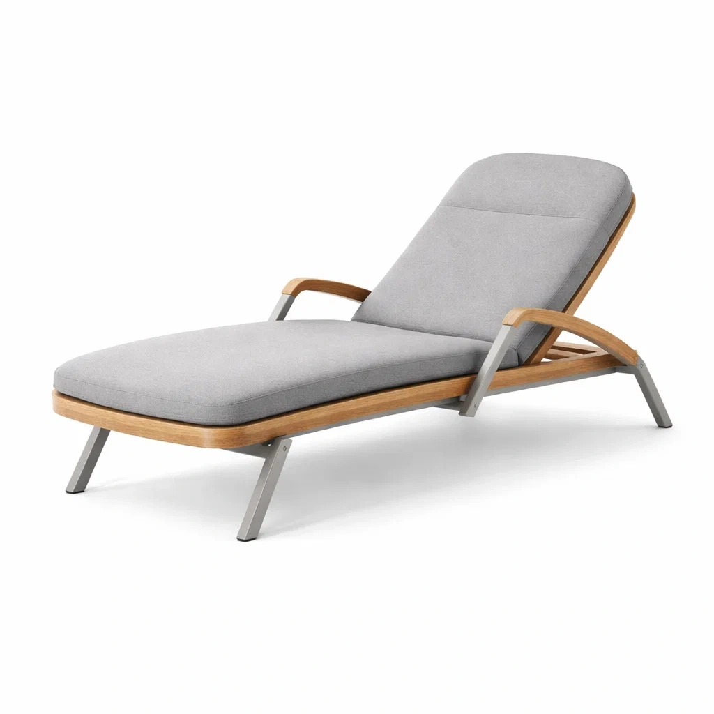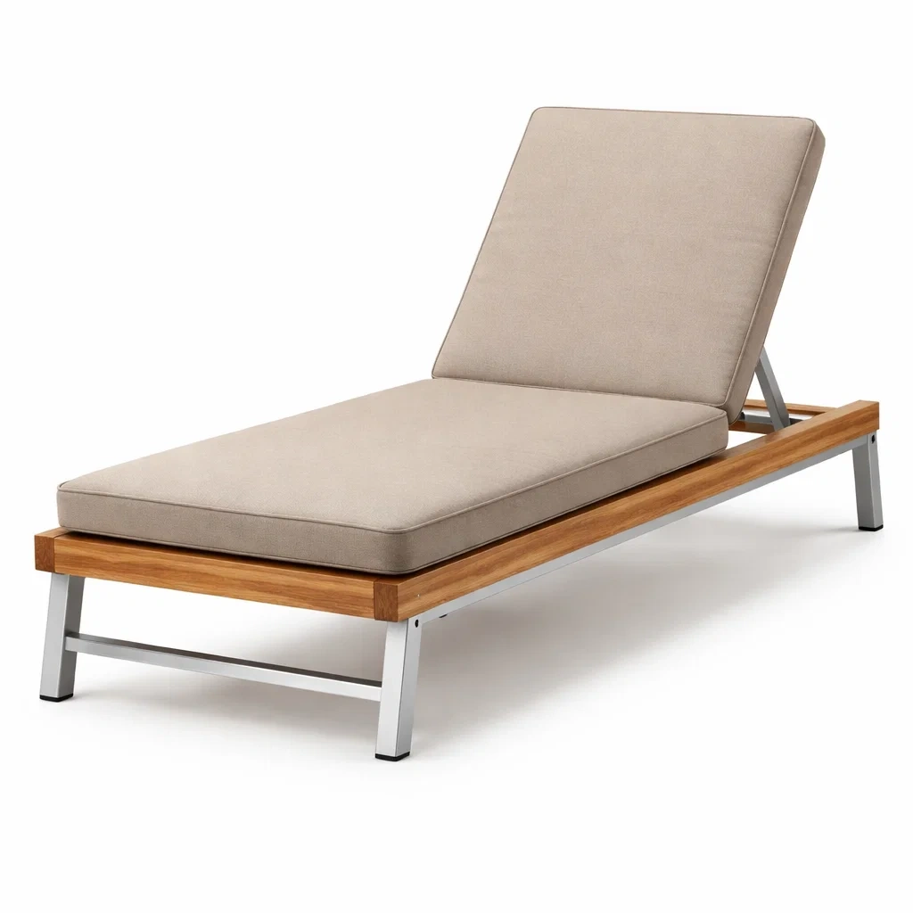 Sdraio in teak e alluminio con cuscino beige