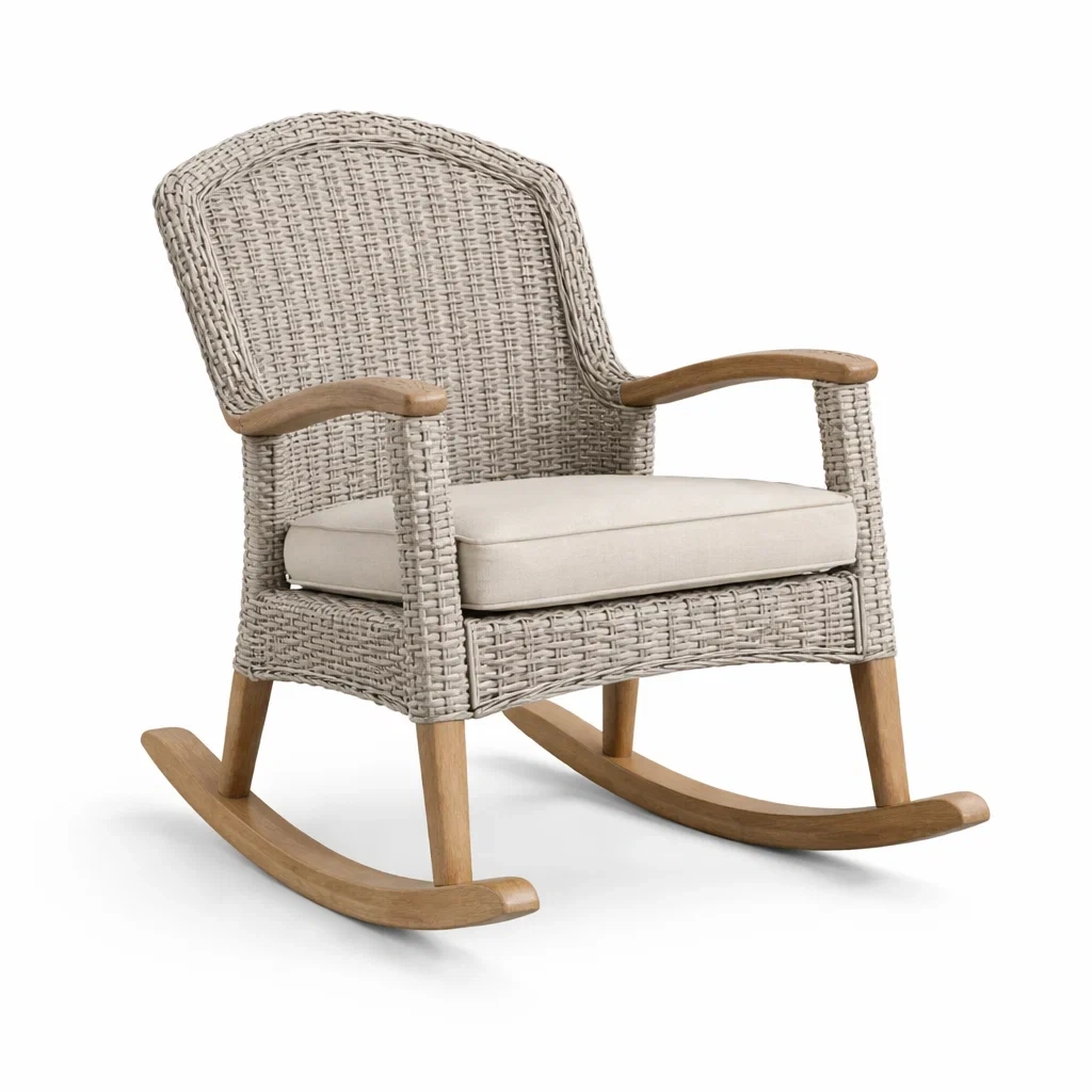 Struttura in legno con rattan sintetico intrecciato.